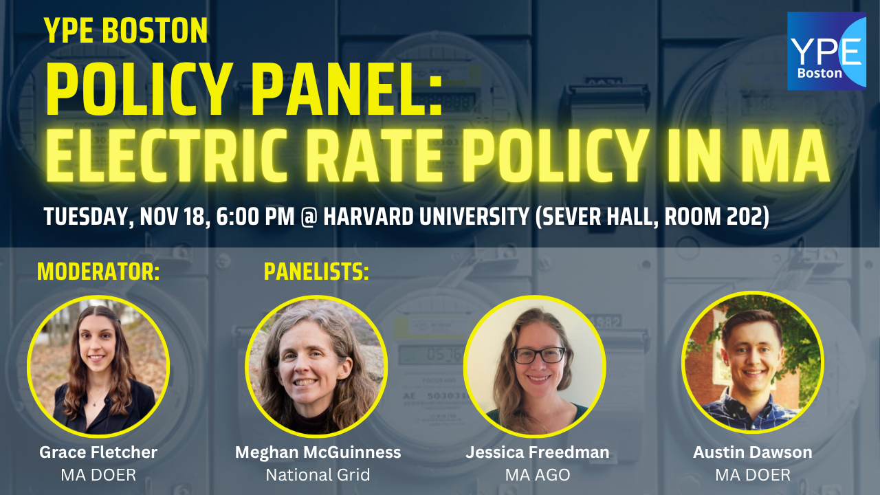 Join YPE Boston at Harvard University for a policy panel discussion about electric rates policy in Massachusetts!
